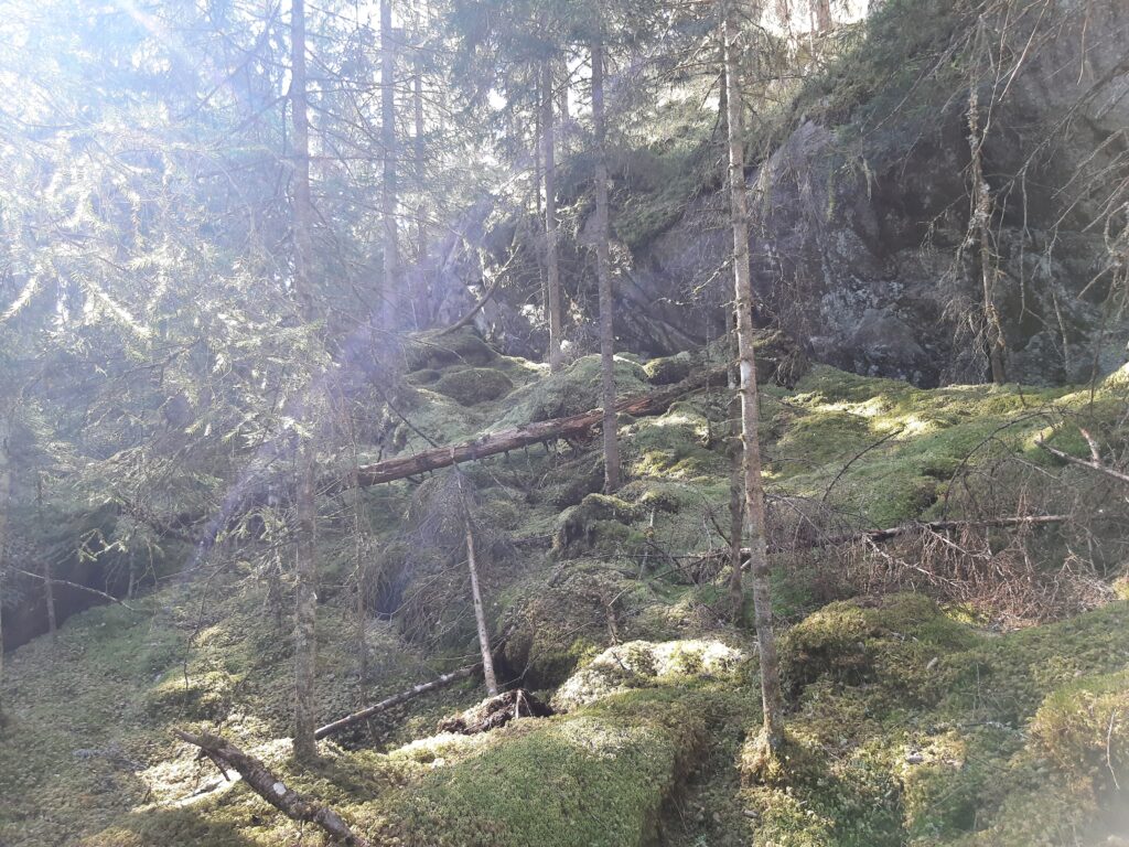 Att stå i en pelarsal av gamla träd där ljus och skuggor leker i trädens blad och grenar faller på marken mossor och stenar är som att stå i en katedral – en sakral plats. VAKA – Vara Andas Känna Allt
